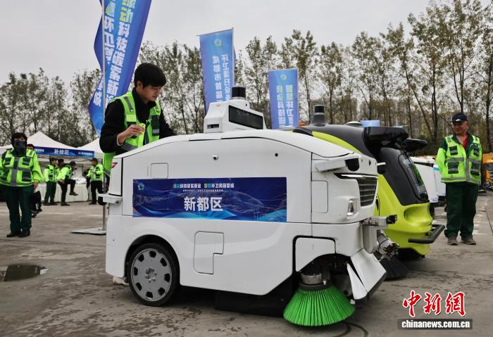 10月29日,成城市尾届无人驾驭环卫扫除征战技巧逐鹿正在蓉举办,多台无人驾驭环卫车正在模仿乡市面道的赛场上有序穿越、精确功课,齐里出现“聪慧纯洁”体系正在可靠场景停的归纳本领。图为1辆参赛车正在停止拂拭渣滓角逐。中新社记者 王磊 摄